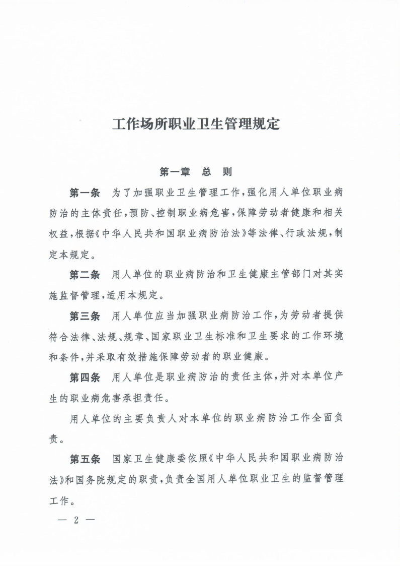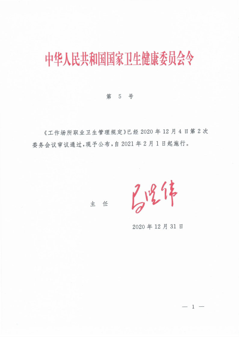 工作場所職業(yè)衛(wèi)生管理規(guī)定(國家衛(wèi)健委令第5號)